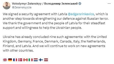 同日早些時候,澤連斯基在另一條貼文中宣布,烏克蘭已經(jīng)與英國、德國、法國、丹麥、加拿大、意大利、荷蘭、芬蘭和拉脫維亞簽署了雙邊安全協(xié)議。他還稱,“烏克蘭將繼續(xù)努力與其他國家達成新協(xié)議?!?/p>