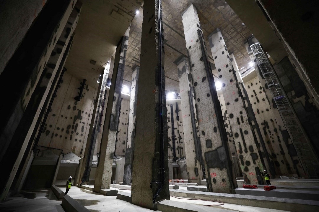 當(dāng)?shù)貢r間2024年3月13日,法國巴黎,建造中的巨型地下雨水蓄水池,用于暴雨來襲時儲存雨水。