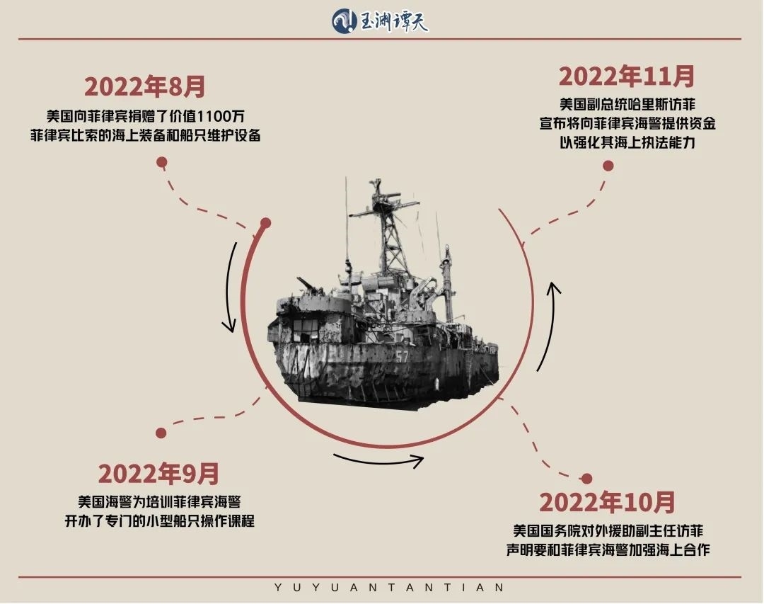 2023年2月6日,菲律賓海警開始炒作所謂的“中國(guó)海警在仁愛礁用激光照射菲方船只”一事。