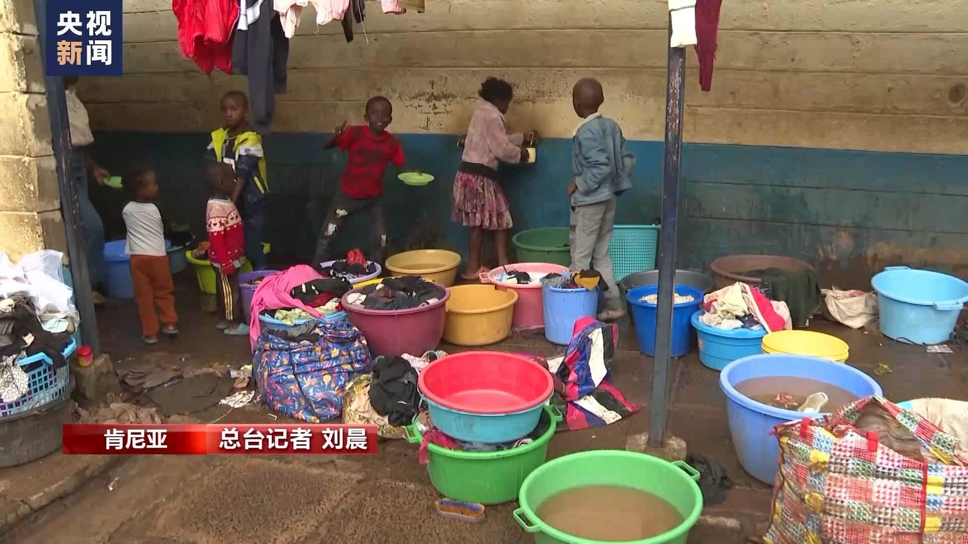 總臺(tái)記者 劉晨:這里是位于肯尼亞首都內(nèi)羅畢市中心馬薩雷貧民窟里的一所小學(xué),因?yàn)楹闉?zāi)失去住所的居民們被臨時(shí)安置在這里。由于暴雨影響,肯尼亞當(dāng)?shù)貙W(xué)校的開學(xué)時(shí)間從本周又向后推遲了一周?,F(xiàn)在我身后這樣的教室已經(jīng)被改造成了臨時(shí)寢室,供災(zāi)民休息。政府送來了棉被和枕頭,每天也會(huì)定時(shí)為這里的難民提供食物。