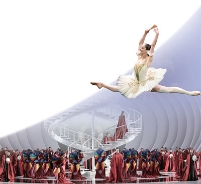 圖片從上至下依次為:國(guó)家大劇院外景。法國(guó)波爾多國(guó)家歌劇院芭蕾舞團(tuán)演出照。國(guó)家大劇院制作古諾歌劇《羅密歐與朱麗葉》劇照。以上圖片均為國(guó)家大劇院提供