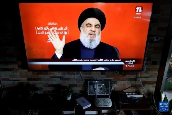 這是9月19日在黎巴嫩貝魯特拍攝的真主黨領(lǐng)導(dǎo)人納斯魯拉發(fā)表講話的電視畫面。新華社發(fā)(比拉爾·賈維希攝)