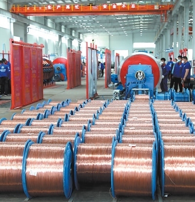 固達(dá)電線電纜(集團(tuán))有限公司二期新能源線纜車間內(nèi)整齊擺放著銅導(dǎo)體。以上圖片均為本報(bào)記者陳尚文攝