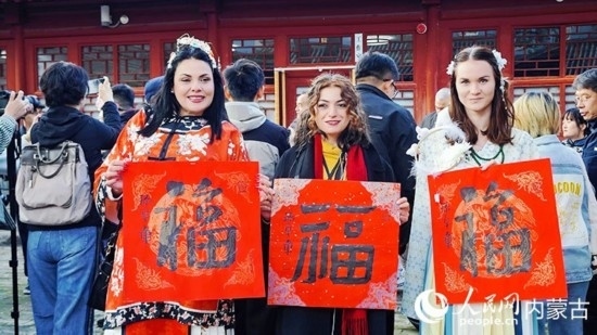 人民網(wǎng)呼和浩特10月23日電 (張聿修、孟佳澍、張雪冬、實(shí)習(xí)生朱昱晗)?!暗埂绷???!暗健绷?!擺弄著手中的福字,了解到關(guān)于福字的寓意,塔吉克斯坦記者烏斯蒙·阿卜杜恰洪洛夫露出驚訝的表情,感嘆中國(guó)語(yǔ)言蘊(yùn)含的智慧。
