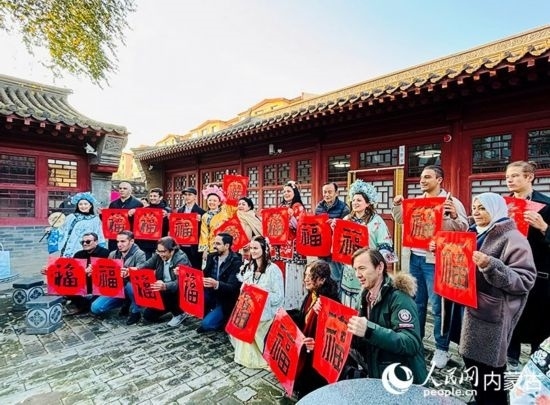 10月22日,“一帶一路”青年友好交流活動(dòng)走進(jìn)內(nèi)蒙古呼和浩特市大盛魁博物館集群,期間參觀了中國(guó)文化產(chǎn)業(yè)協(xié)會(huì)書(shū)畫(huà)藝術(shù)專業(yè)委員會(huì)主任、著名書(shū)畫(huà)家孫卓章的工作室,孫卓章為外媒記者贈(zèng)送墨寶,傳遞美好祝福。