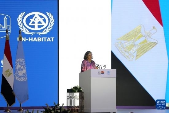 11月4日,在埃及首都開羅,聯(lián)合國(guó)人居署執(zhí)行主任阿納克勞迪婭·羅斯巴赫在第12屆世界城市論壇開幕式上講話。新華社記者 王東震 攝