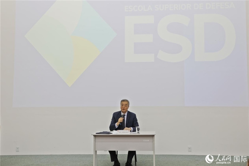 中國(guó)駐阿爾及利亞大使董廣利(右一)、阿爾及爾第二大學(xué)校長(zhǎng)拉赫曼尼(中)參加活動(dòng)并致辭。人民網(wǎng)記者 郝瑞敏攝