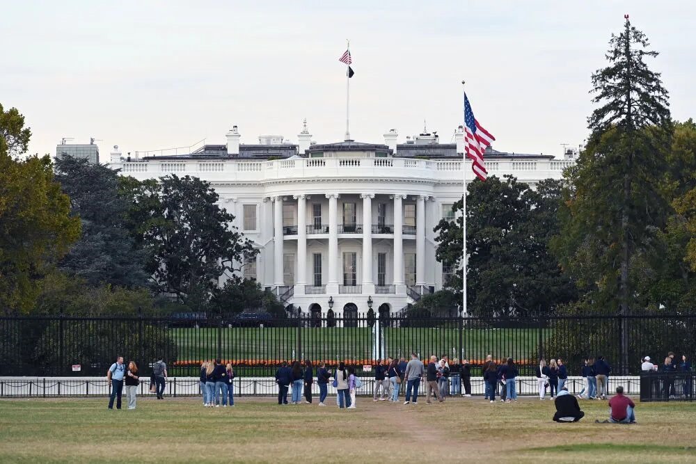 2025年10月21日,在美國華盛頓,人們?cè)诎讓m前休閑。新華社記者李睿攝