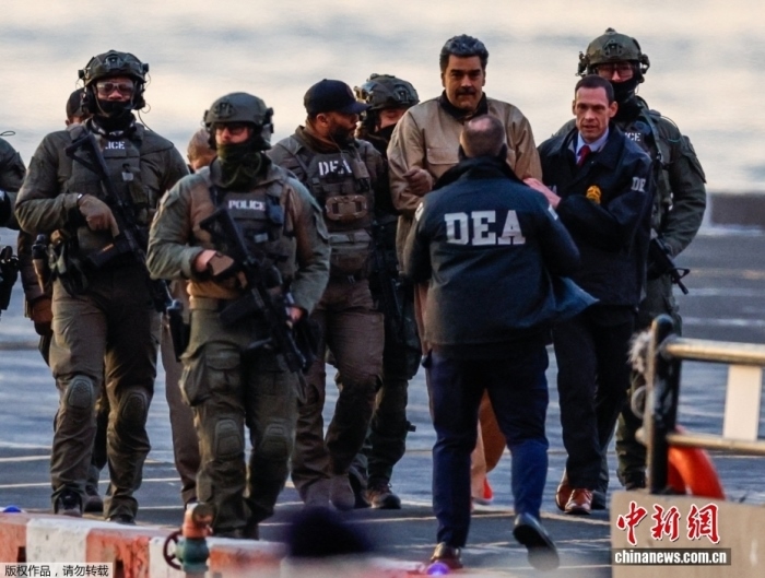當(dāng)?shù)貢r間1月5日,委內(nèi)瑞拉總統(tǒng)馬杜羅抵達美國紐約聯(lián)邦法庭,將在這里首次出庭受審。圖為馬杜羅在前往法院途中。