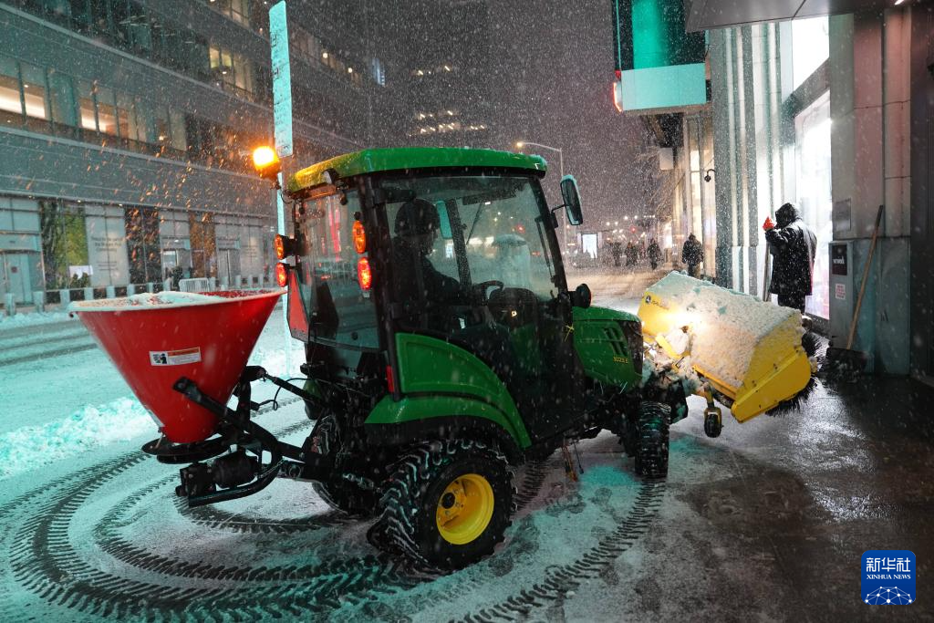 2月22日,在美國(guó)紐約,一輛鏟雪車(chē)清理人行道積雪。新華社記者 張鳳國(guó) 攝