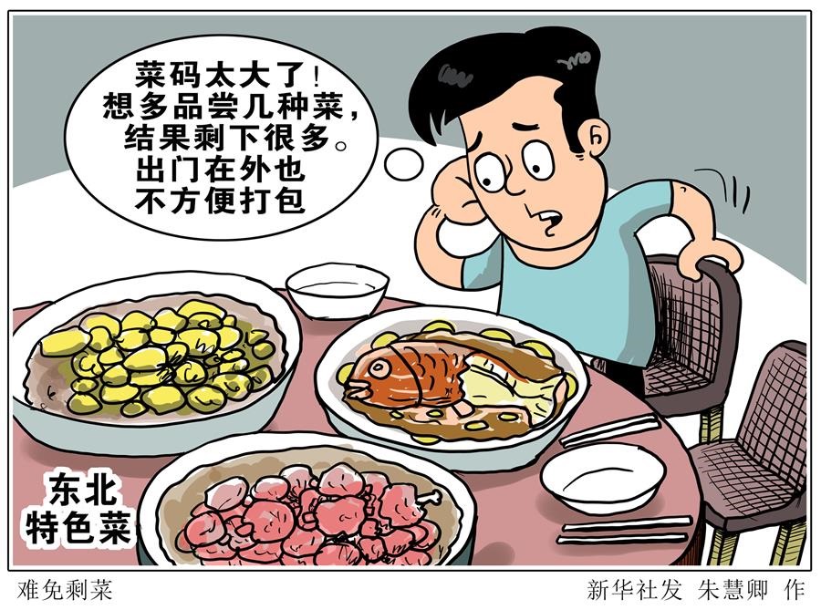 前不久從廣東來吉林旅游的張文奇體驗(yàn)了鍋包肉、鐵鍋燉魚等東北特色菜,喜愛的同時(shí)他忍不住吐槽:“菜碼太大了!想多品嘗幾種菜,結(jié)果剩下很多。出門在外也不方便打包?!?/p>