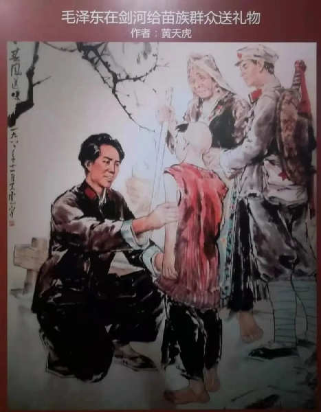 “當(dāng)我等行經(jīng)劍河縣附近之某村落時,見路邊有一老婦與一童子,身穿單衣,倒于路邊,氣息尚存……正詢問間,赤軍領(lǐng)袖毛澤東至,告以老婦所言。當(dāng)時毛即時從身上脫下毛線衣一件及行李中取出被單一條,授予老婦,并命人給以白米一斗。老婦則連連道謝含笑而去。”
