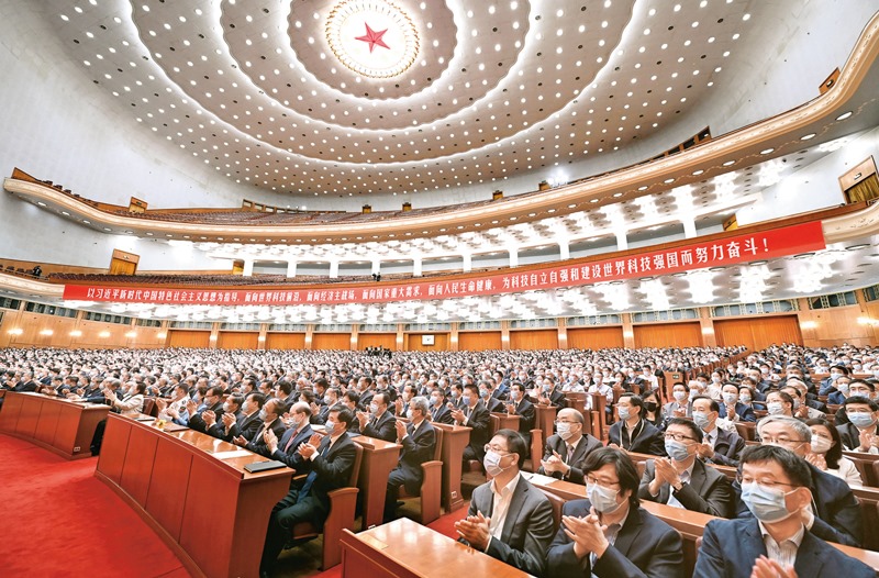 2021年5月28日,中國科學院第二十次院士大會、中國工程院第十五次院士大會和中國科學技術(shù)協(xié)會第十次全國代表大會在北京人民大會堂隆重召開。圖為大會現(xiàn)場。新華社記者李響/攝