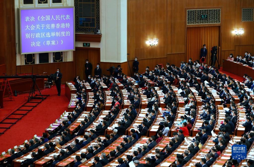 3月11日,十三屆全國(guó)人大四次會(huì)議表決通過(guò)《全國(guó)人民代表大會(huì)關(guān)于完善香港特別行政區(qū)選舉制度的決定》。這是繼制定實(shí)施香港國(guó)安法后,中央依法治港的又一重大舉措,是完善“一國(guó)兩制”制度體系、落實(shí)中央對(duì)香港全面管治權(quán)的具體體現(xiàn),為全面落實(shí)“愛國(guó)者治港”原則提供了更加堅(jiān)實(shí)的制度保障。3月30日,十三屆全國(guó)人大常委會(huì)第二十七次會(huì)議通過(guò)了新修訂的香港基本法附件一和附件二。隨后,香港特別行政區(qū)完成本地立法。新選舉制度為推進(jìn)香港民主穩(wěn)步發(fā)展、實(shí)現(xiàn)良政善治,促進(jìn)“一國(guó)兩制”實(shí)踐行穩(wěn)致遠(yuǎn)打下堅(jiān)實(shí)基礎(chǔ)。