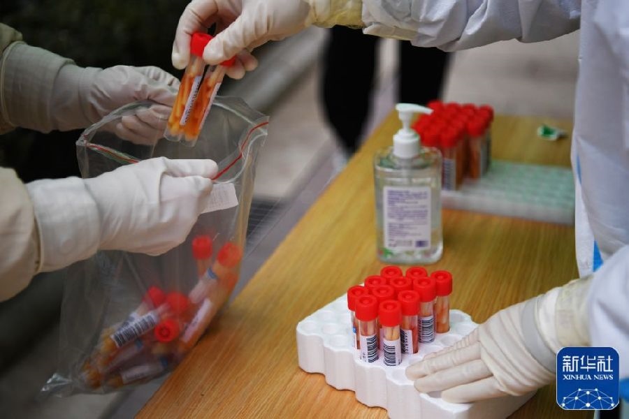 1月10日,在鄭州市緯一路核酸檢測點(diǎn),醫(yī)護(hù)人員在封裝核酸樣本箱,準(zhǔn)備送檢。新華社記者郝源攝