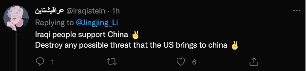 伊拉克網(wǎng)友@iraqistein:“伊拉克人民支持中國,粉碎一切美國可能給中國帶來的威脅吧?!?/p>