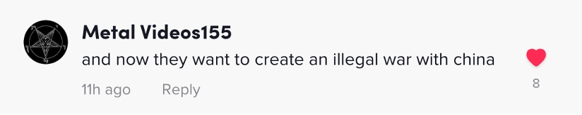 網(wǎng)友Metal Videos155:“不僅如此,現(xiàn)在美國還想要發(fā)動(dòng)一場非法的對華戰(zhàn)爭。”