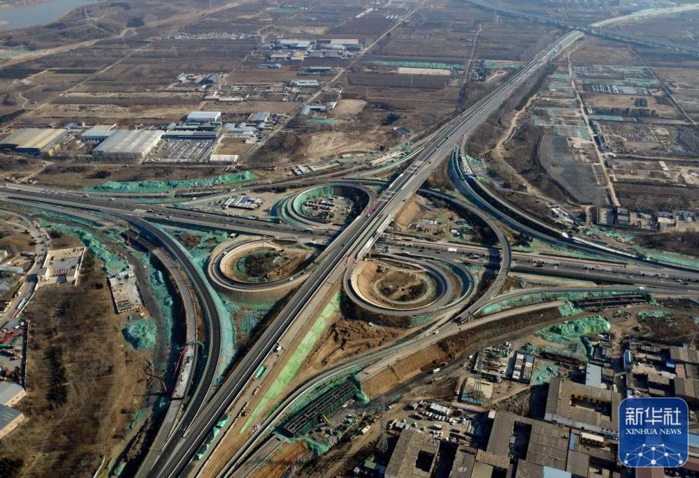 12月15日,工人在石家莊市北三環(huán)與復(fù)興大街互通工程建設(shè)工地施工(無(wú)人機(jī)照片)。 新華社記者 楊世堯 攝