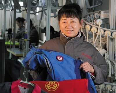 大教廠村服裝車間工人李金榮:“穿上我們做的校服,孩子們更精神了?!?/p>