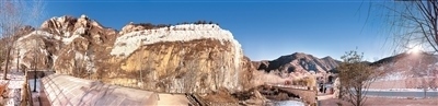 駱駝灣村的“太行冰瀑”景觀,在朝陽的映襯下,盡顯獨(dú)特神韻。