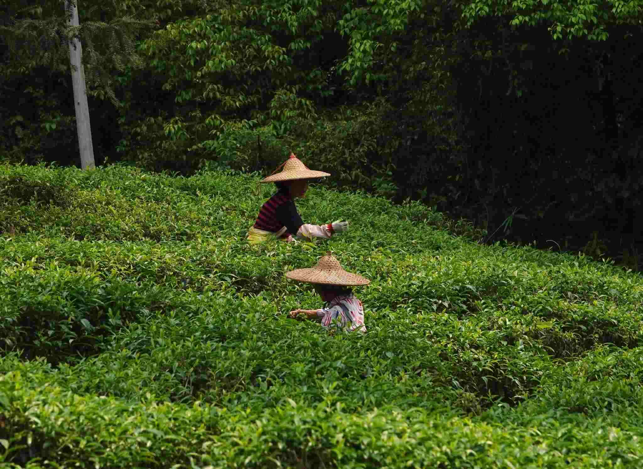 2023年4月13日,廣西賀州,茶鄉(xiāng)昭平縣在持續(xù)了20多天的春雨之后終于放晴,茶農(nóng)上山趕采春茶。視覺中國