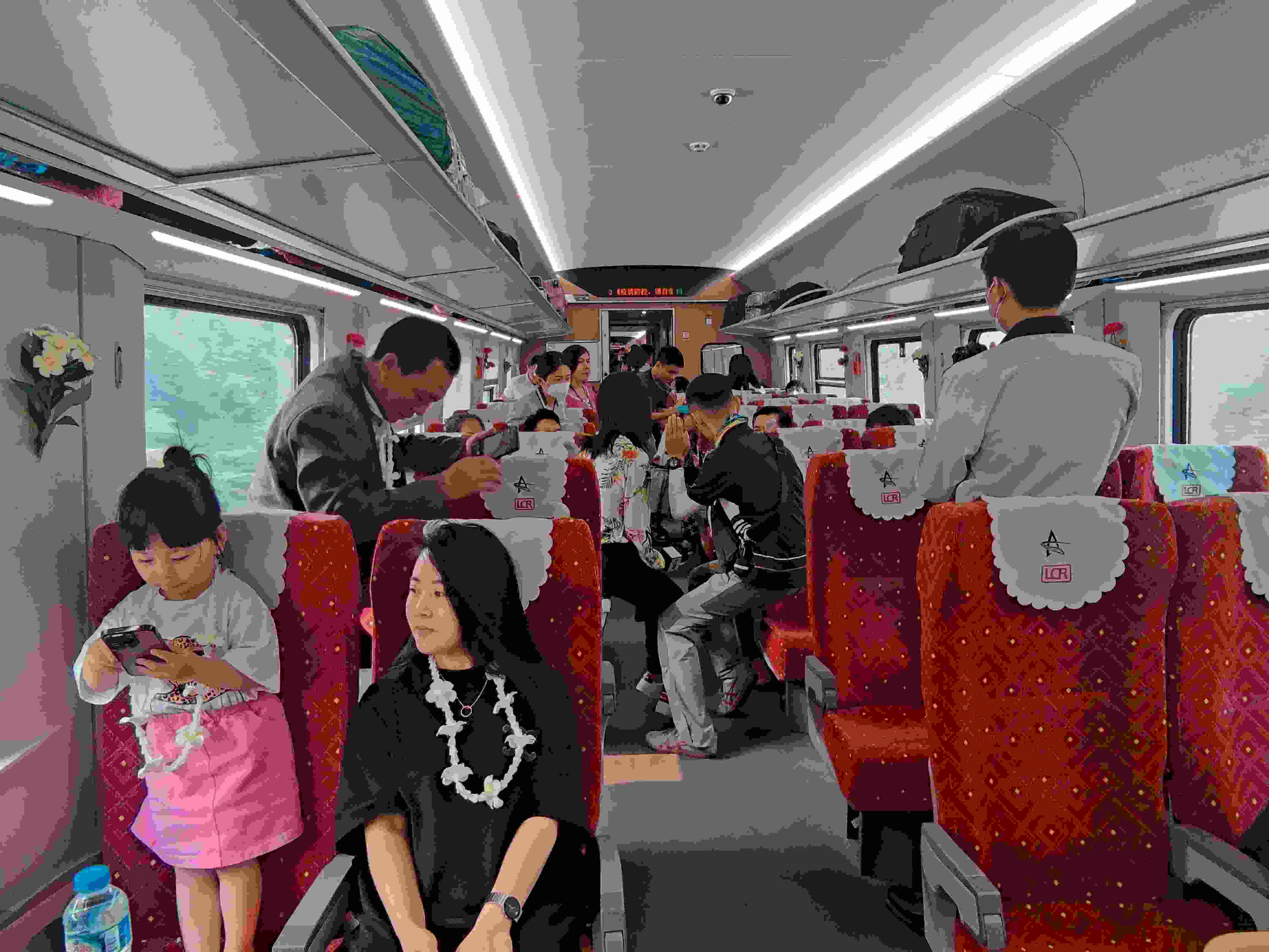 擔(dān)當(dāng)跨境客運(yùn)服務(wù)的中老鐵路動(dòng)車組,從昆明南始發(fā)的為采用綠色涂裝的復(fù)興號(hào)CR200J型動(dòng)力集中動(dòng)車組“綠巨人”,從萬象站始發(fā)的為采用紅白藍(lán)三色涂裝的“瀾滄號(hào)”。列車基于中國“復(fù)興號(hào)”動(dòng)車組技術(shù)平臺(tái),結(jié)合中老兩國自然環(huán)境、線路條件、本土文化以及跨國運(yùn)營需求為中老鐵路“量身打造”,設(shè)計(jì)時(shí)速160公里,定員載客720人。(張進(jìn)剛 姜超 )