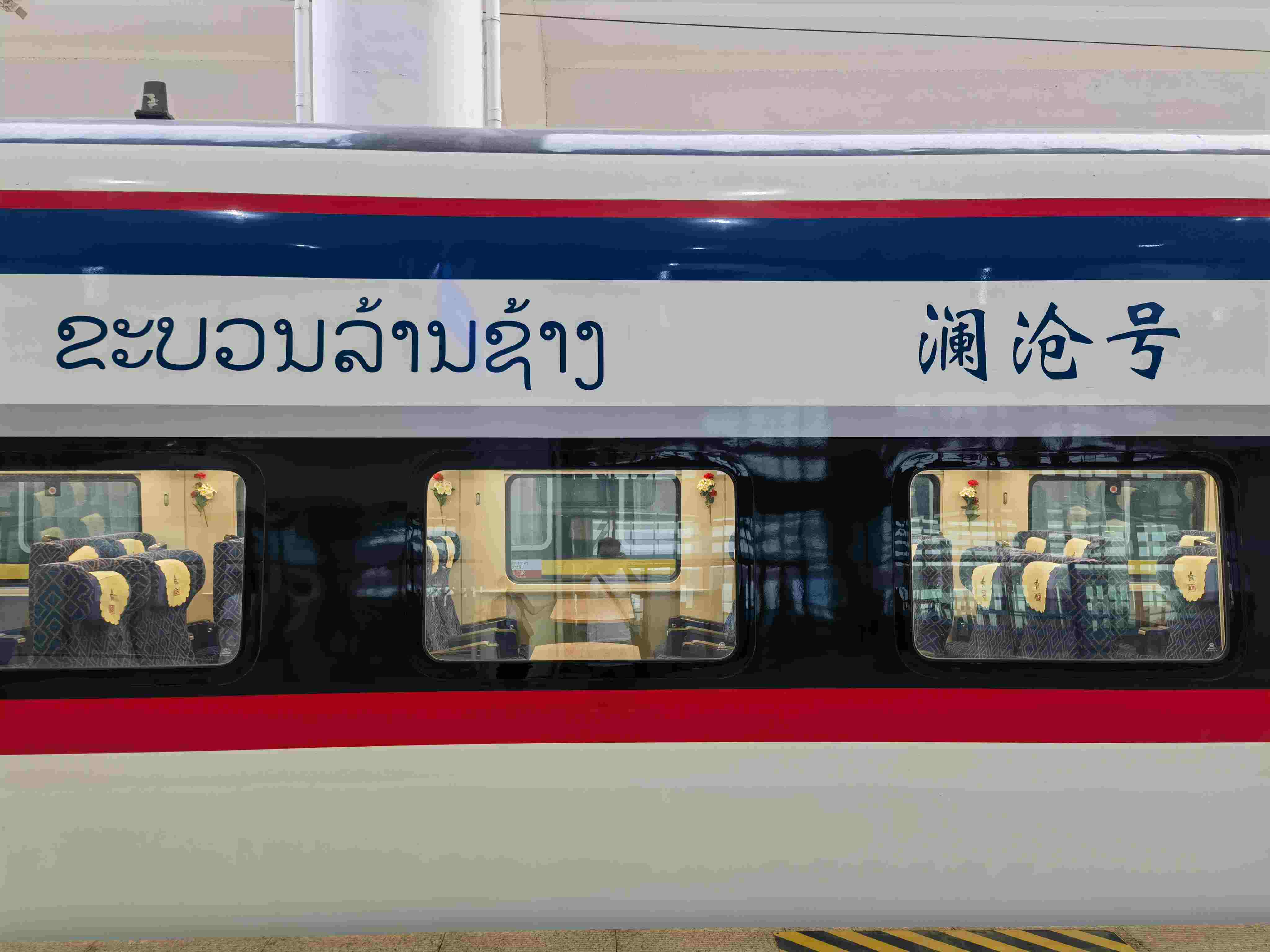 擔(dān)當(dāng)跨境客運(yùn)服務(wù)的中老鐵路動(dòng)車組,從昆明南始發(fā)的為采用綠色涂裝的復(fù)興號(hào)CR200J型動(dòng)力集中動(dòng)車組“綠巨人”,從萬象站始發(fā)的為采用紅白藍(lán)三色涂裝的“瀾滄號(hào)”。列車基于中國“復(fù)興號(hào)”動(dòng)車組技術(shù)平臺(tái),結(jié)合中老兩國自然環(huán)境、線路條件、本土文化以及跨國運(yùn)營需求為中老鐵路“量身打造”,設(shè)計(jì)時(shí)速160公里,定員載客720人。( 張進(jìn)剛 姜超 )