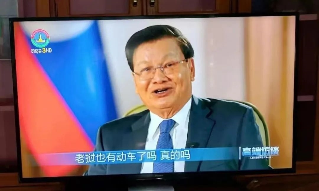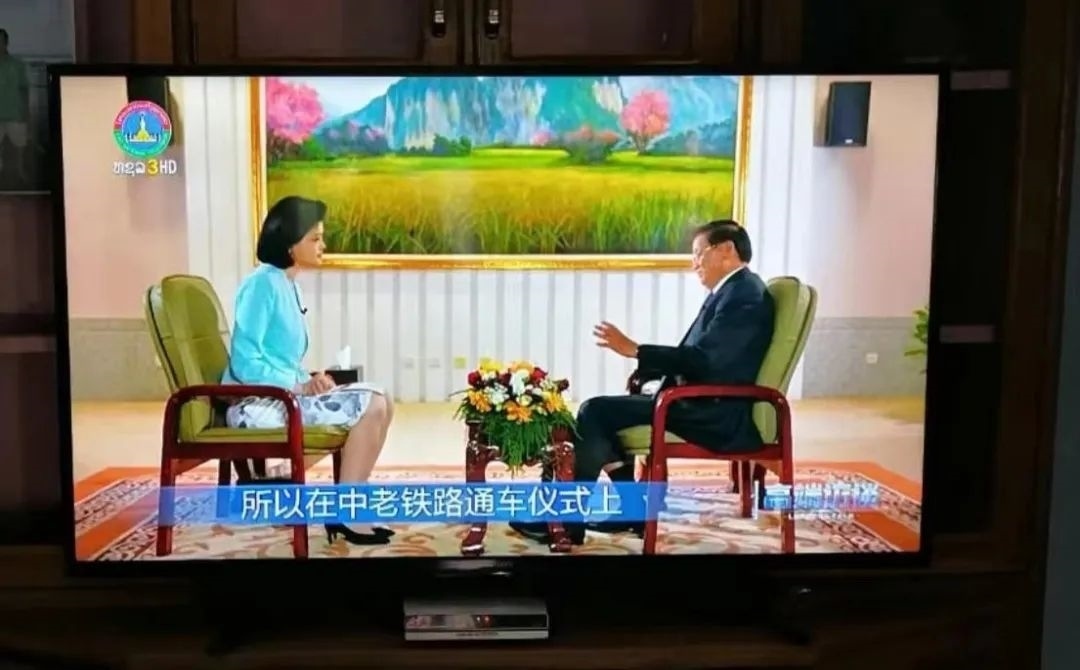 △專(zhuān)訪老撾國(guó)家主席通倫的節(jié)目在老撾國(guó)家電視臺(tái)播出