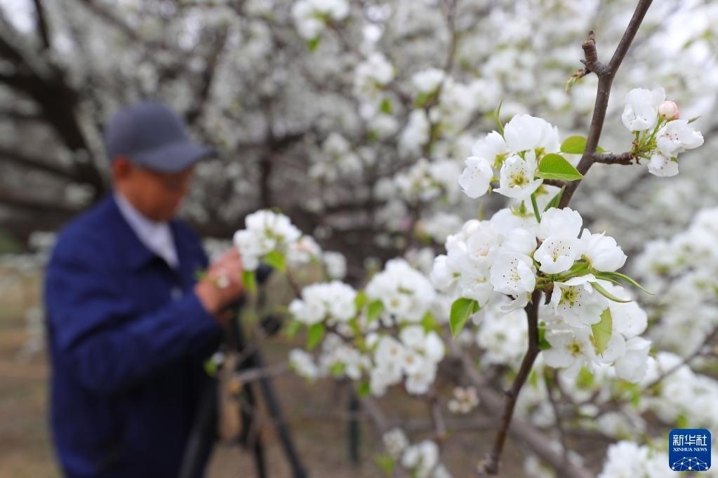 4月17日,攝影愛好者在拍攝梨花。   新華社記者 楊青 攝