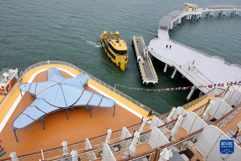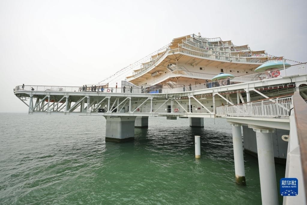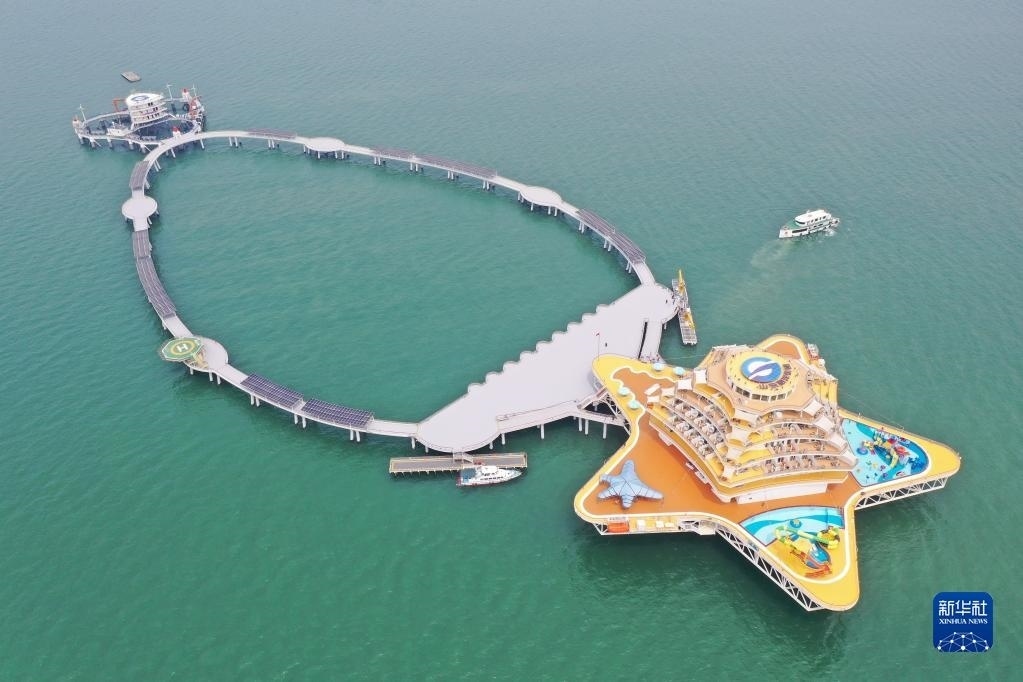 當(dāng)日,位于山東省煙臺(tái)市萊山區(qū)的“耕海1號(hào)”海洋牧場(chǎng)綜合體二期項(xiàng)目投入運(yùn)營(yíng)。“耕海1號(hào)”集漁業(yè)養(yǎng)殖、海上觀光、休閑垂釣、餐飲住宿、科研科普等于一體,創(chuàng)新性實(shí)現(xiàn)現(xiàn)代海洋漁業(yè)、海洋工程技術(shù)和海洋文化旅游產(chǎn)業(yè)深度有機(jī)融合。新華社記者 李紫恒 攝