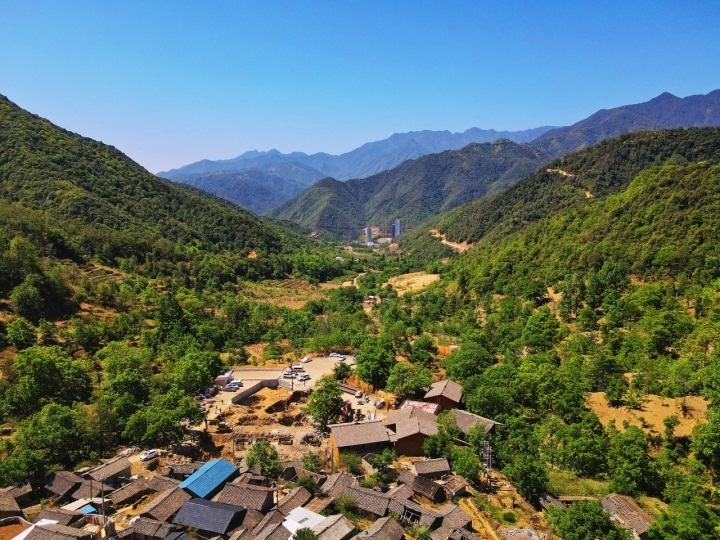 正值“五一”假期,潮新聞記者走進(jìn)了八一村,沿著一條新修的水泥路在大山中蜿蜒穿行,一棵棵花椒樹點綴在成片的茶園梯田里,目之所及皆綠意盎然。村民們正埋頭在茶地里澆水灌溉,工人們則忙碌地搬磚運(yùn)土,一個個精美的民宿小屋呼之欲出——未來,這里將變成一個以民宿、旅游綜合體為主的航天文旅村。