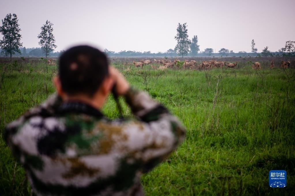 巡護(hù)隊(duì)伍通過(guò)望遠(yuǎn)鏡、長(zhǎng)焦相機(jī)、無(wú)人機(jī)、視頻監(jiān)測(cè)塔、紅外相機(jī)等工具,對(duì)1500余頭麋鹿進(jìn)行日常監(jiān)測(cè)、年節(jié)律周期監(jiān)測(cè)、種群動(dòng)態(tài)監(jiān)測(cè),并對(duì)保護(hù)區(qū)內(nèi)的氣象數(shù)據(jù)、水文數(shù)據(jù)、地表水質(zhì)數(shù)據(jù)、植被類(lèi)型以及其他野生動(dòng)物情況進(jìn)行監(jiān)測(cè)記錄。他們還需要承擔(dān)卡口值守、應(yīng)急管理等工作。在他們的悉心照料下,這里成為適宜麋鹿種群棲息的家園。