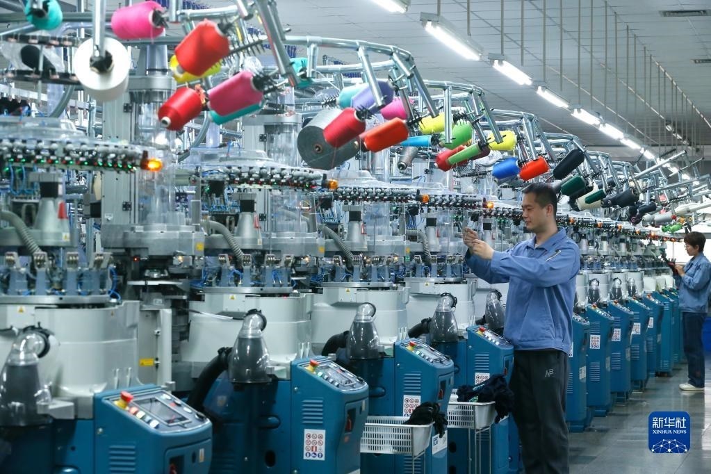 5月4日,在山東省青島市即墨區(qū)一家制襪企業(yè),工人生產(chǎn)出口到海外市場(chǎng)的產(chǎn)品。
