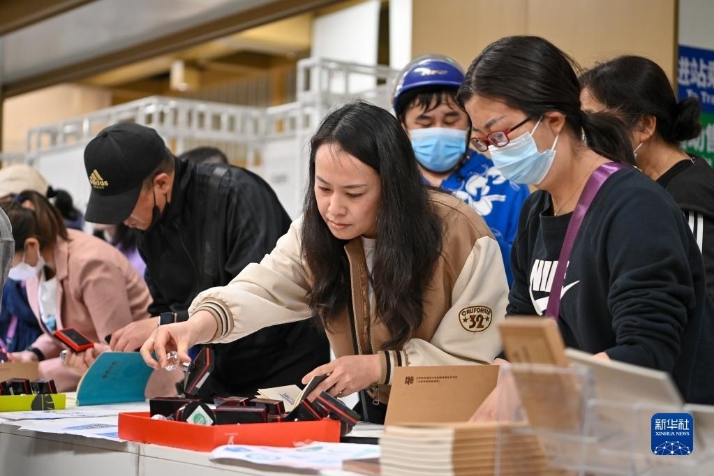 5月9日,在太原地鐵2號線大南門站,市民在第三屆“印記太原”文化創(chuàng)意設(shè)計展上體驗古城游集章活動。