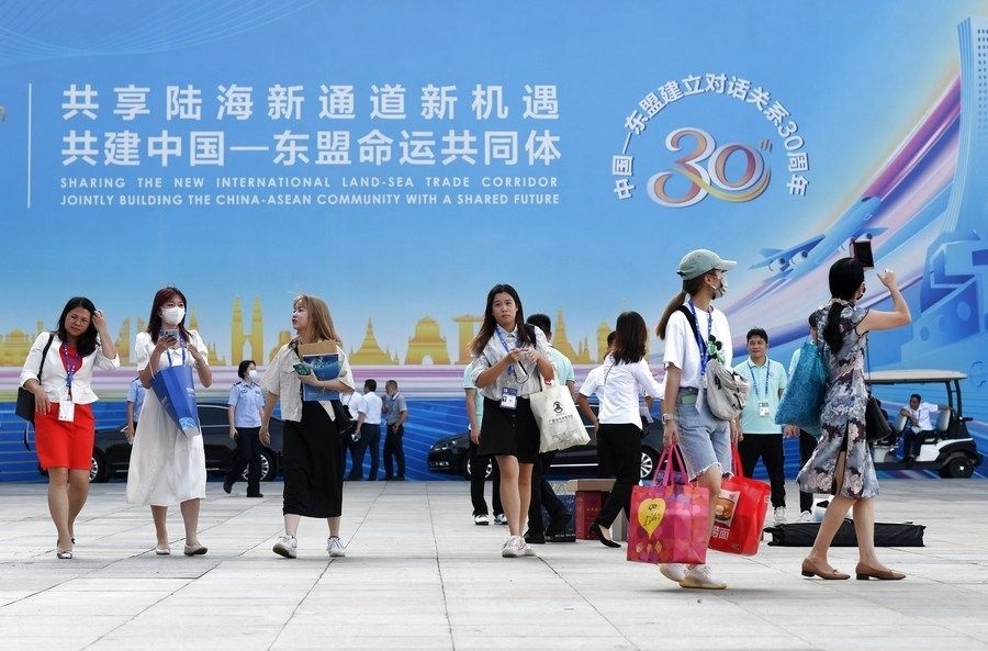 2021年9月11日,在廣西南寧國際會展中心,參觀者走出第18屆中國—東盟博覽會展館。新華社記者 陸波岸 攝