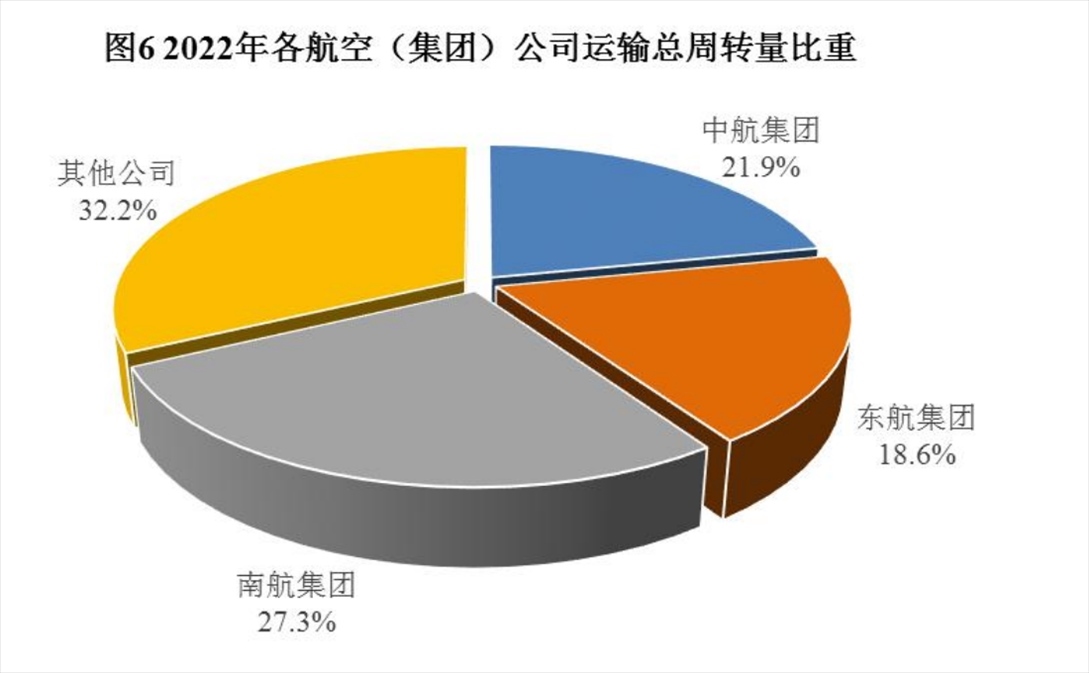 2022年各航空(集團(tuán))公司運輸總周轉(zhuǎn)量比重。來源于2022年民航行業(yè)發(fā)展統(tǒng)計公報