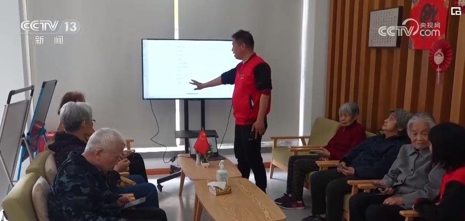 在上海普陀區(qū)長風(fēng)街道,社區(qū)工作人員正在和外賣平臺工作人員集體培訓(xùn)老年人用手機(jī)APP的“長輩模式”來解決點(diǎn)餐、買菜、買藥等日常生活需要。