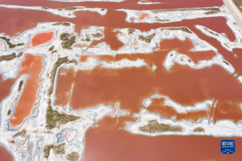 這是5月16日拍攝的運(yùn)城鹽湖一景(無人機(jī)照片)。