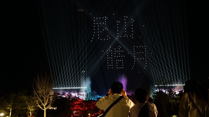 山東曲阜尼山圣境夜游項(xiàng)目?jī)?nèi)的無(wú)人機(jī)表演。(受訪單位供圖)