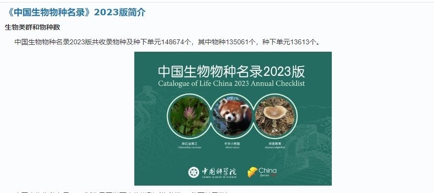 5月22日“國際生物多樣性日”當(dāng)天,中科院生物多樣性委員會在線發(fā)布了《中國生物物種名錄》2023版。據(jù)“物種2000中國節(jié)點(diǎn)”官網(wǎng)介紹,較2022版,2023版名錄新增10027個物種和354個種下單元。