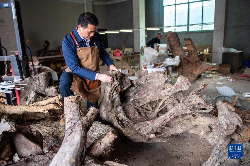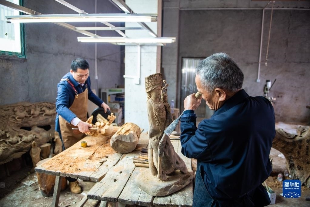洞口木雕已被正式列入湖南省省級非物質文化遺產名錄,木雕產品遠銷70多個國家和地區(qū)。新華社記者 陳思汗 攝