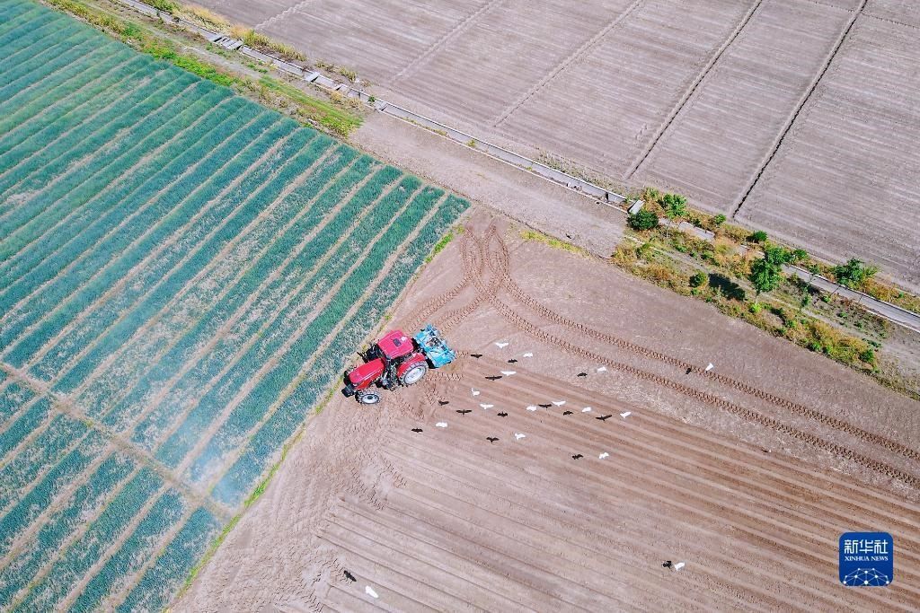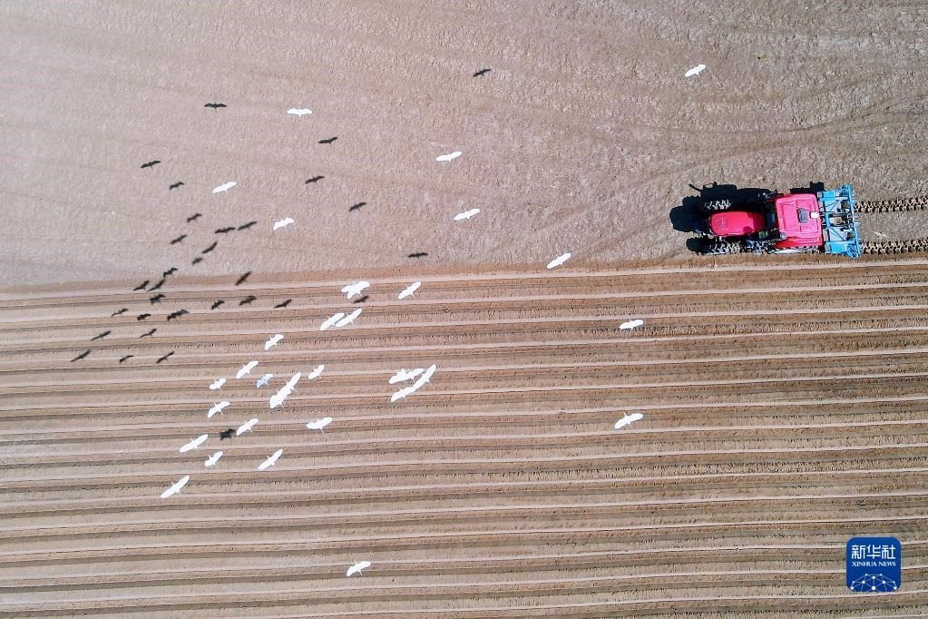 初夏時節(jié),江蘇省如皋市磨頭鎮(zhèn)天陽社區(qū)農田里,農機在田野間往來穿梭,成群的白鷺在翻耕的土地上覓食、嬉戲,構成一幅美麗的生態(tài)畫卷。