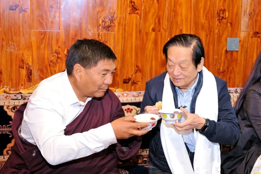 ▲韓美林周建萍夫婦品嘗青稞做的糌粑