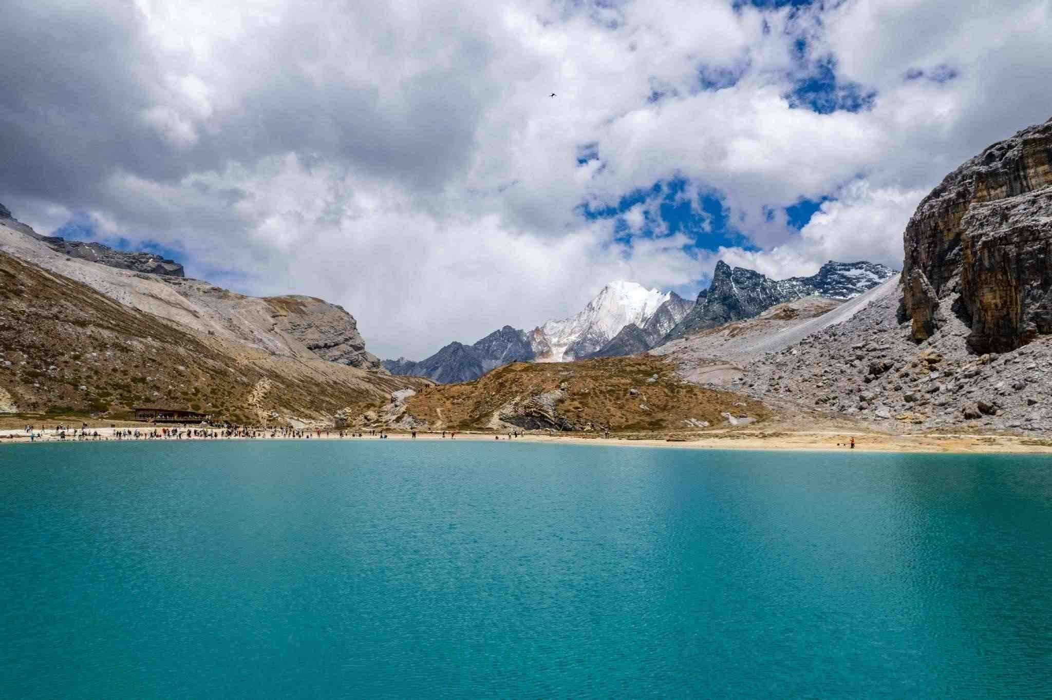 2023年5月25日,四川甘孜,航拍稻城縣亞丁自然保護(hù)區(qū)的牛奶海景區(qū)。視覺(jué)中國(guó)