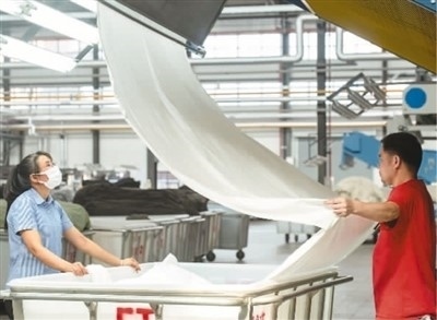 近日,在廣西梧州岑溪市大業(yè)鎮(zhèn)的西部(岑溪)創(chuàng)業(yè)園泰森新紡織產(chǎn)業(yè)集聚區(qū)某車間,染整智能生產(chǎn)線開足馬力高效作業(yè),工人們在崗位上忙碌,呈現(xiàn)出一片熱火朝天的生產(chǎn)景象。岑溪泰森項(xiàng)目以數(shù)字化轉(zhuǎn)型為主要發(fā)展方向,打造數(shù)字化轉(zhuǎn)型“5G+智慧工廠”行業(yè)新標(biāo)桿。 何華文攝(人民視覺)