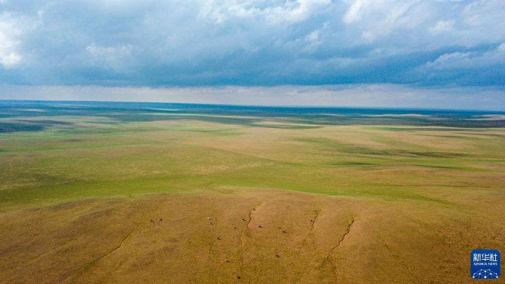 隨著氣溫回升、降雨量逐漸增多,內(nèi)蒙古草原陸續(xù)進入返青期,綠草如毯,風景如畫。   新華社記者 彭源 攝
