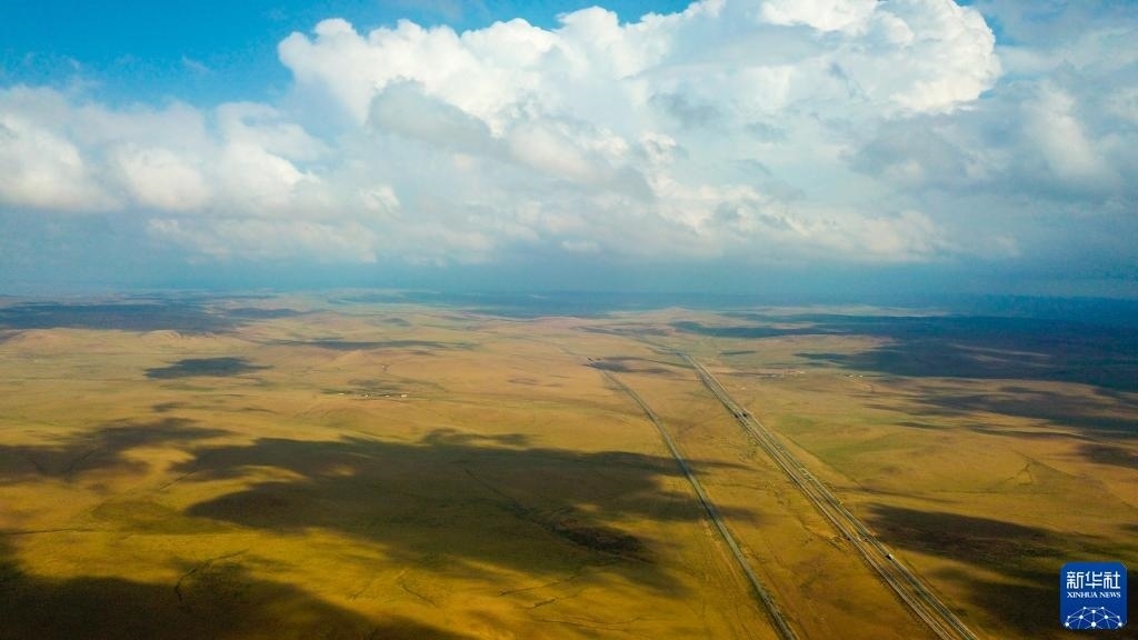 這是5月30日拍攝的內(nèi)蒙古錫林郭勒盟蘇尼特右旗境內(nèi)的草原風光。