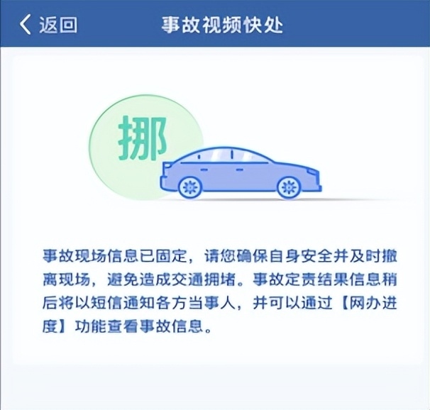 發(fā)生交通事故后,當(dāng)事人只需打開(kāi)“交管12123”APP【事故視頻快處】功能,公安交管部門(mén)接警人員即可與當(dāng)事人視頻連線,“線上見(jiàn)面”遠(yuǎn)程完成輕微事故的快速取證、撤離和認(rèn)定,以提供最快捷的事故處理服務(wù)。