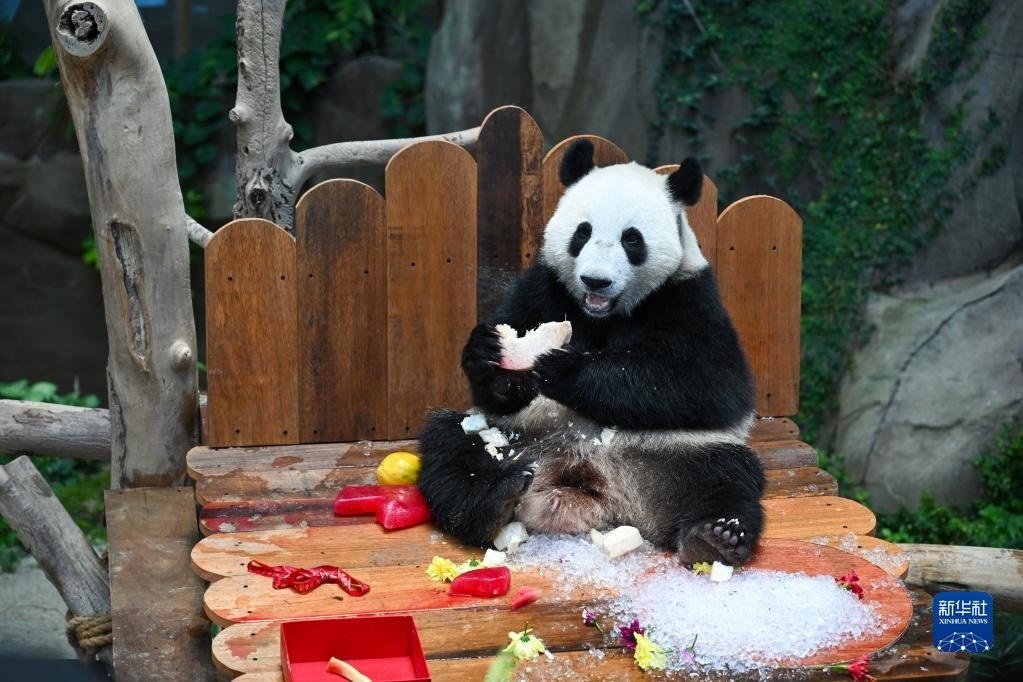 當(dāng)日,大熊貓寶寶“升誼”迎來兩歲生日,動物園為它準(zhǔn)備了特別的生日大餐,眾多民眾前往動物園為它慶生?!吧x”是中國旅馬大熊貓“興興”和“靚靚”生下的第三只寶寶,出生于2021年5月31日中馬建交47周年紀(jì)念日當(dāng)天。新華社記者 朱煒 攝