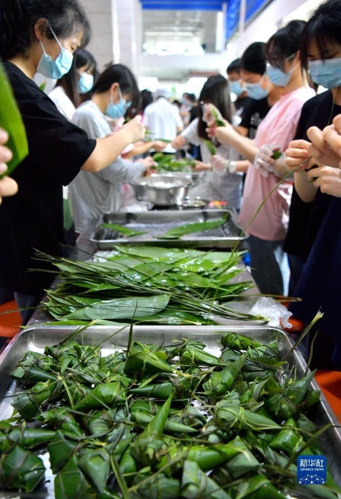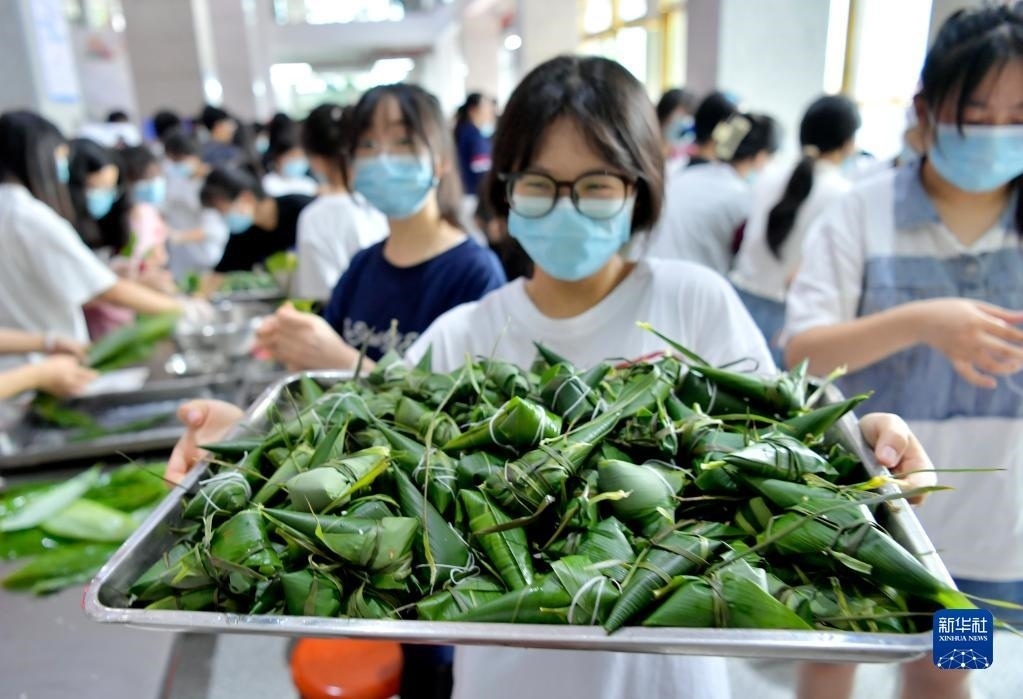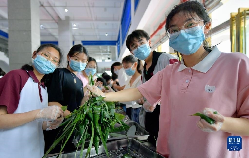 當(dāng)日,湖北省恩施土家族苗族自治州宣恩縣第一高級中學(xué)組織高三學(xué)生參加傳統(tǒng)手工包粽子比賽,讓即將踏入考場的學(xué)生在親自動手體驗傳統(tǒng)文化的過程中舒緩心情、釋放壓力,以輕松的心態(tài)迎接高考。   新華社發(fā)(宋文攝)
